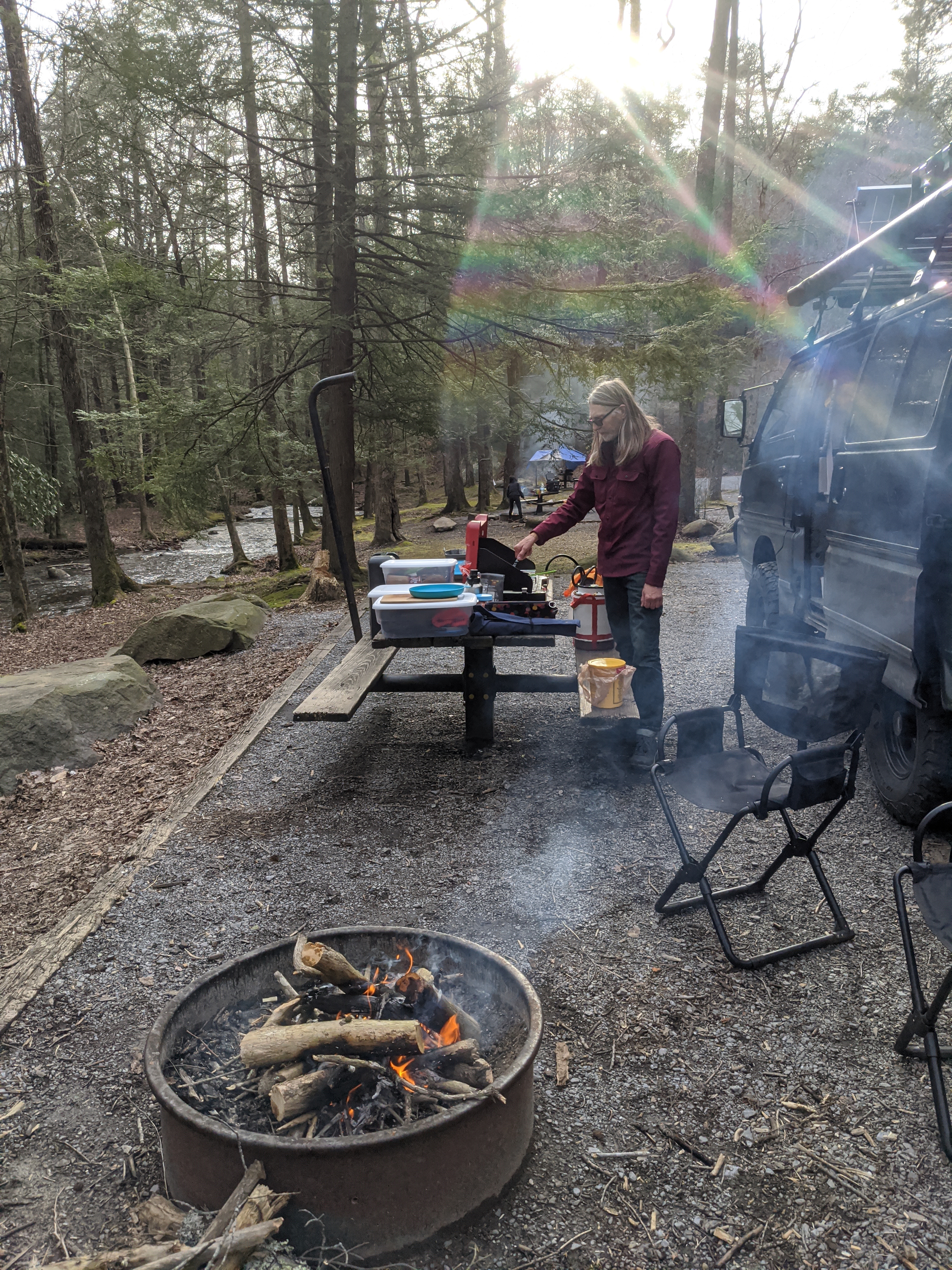 The sun and warmer weather did arrive and it became even more beautiful. We weren’t alone the whole time and met some great people. There was also no cell reception at the campground. Not a big deal except we were waiting to hear when our van could be scheduled for the new engine. I would walk up on the forest road above the campground until I got a signal.