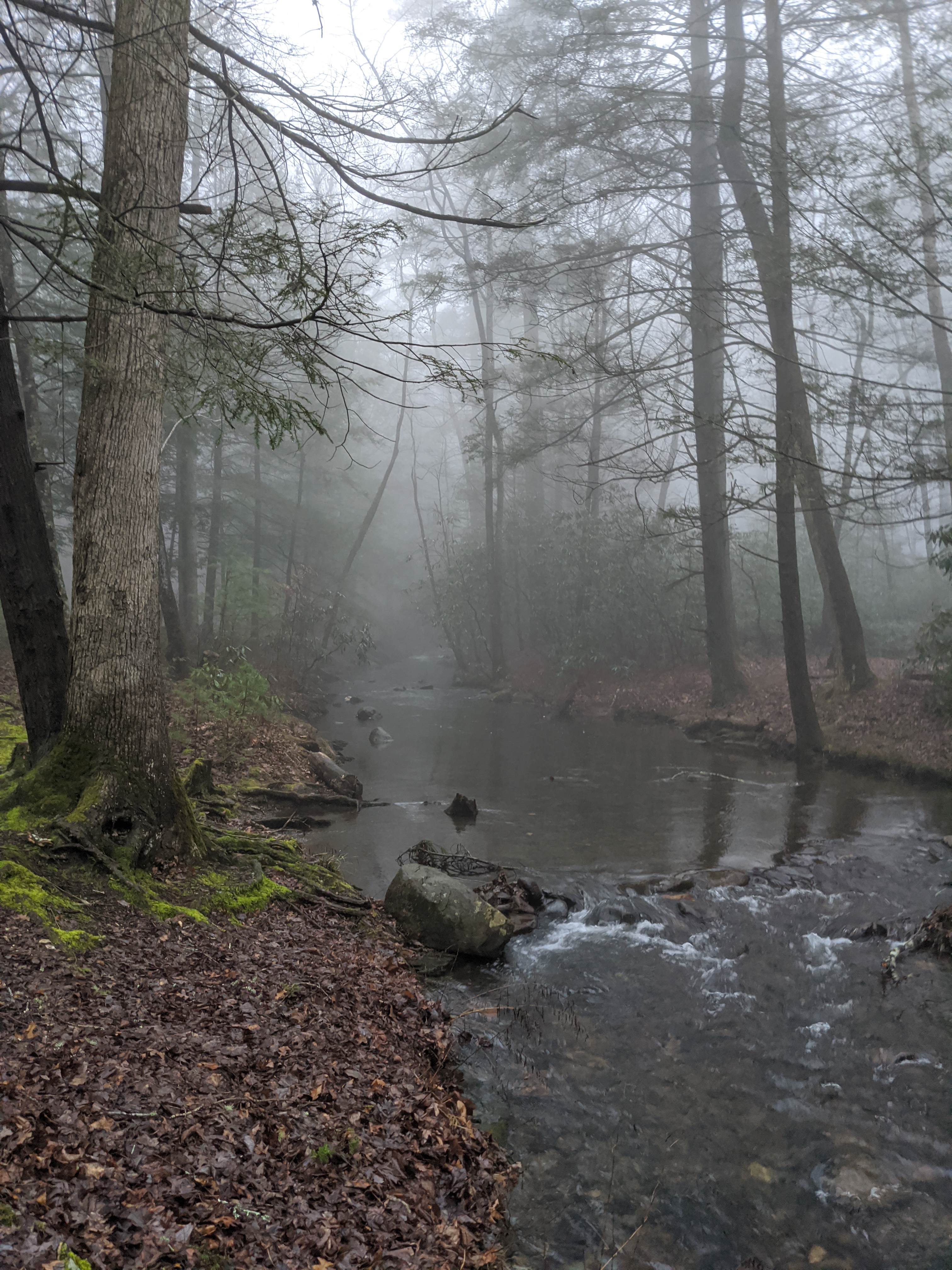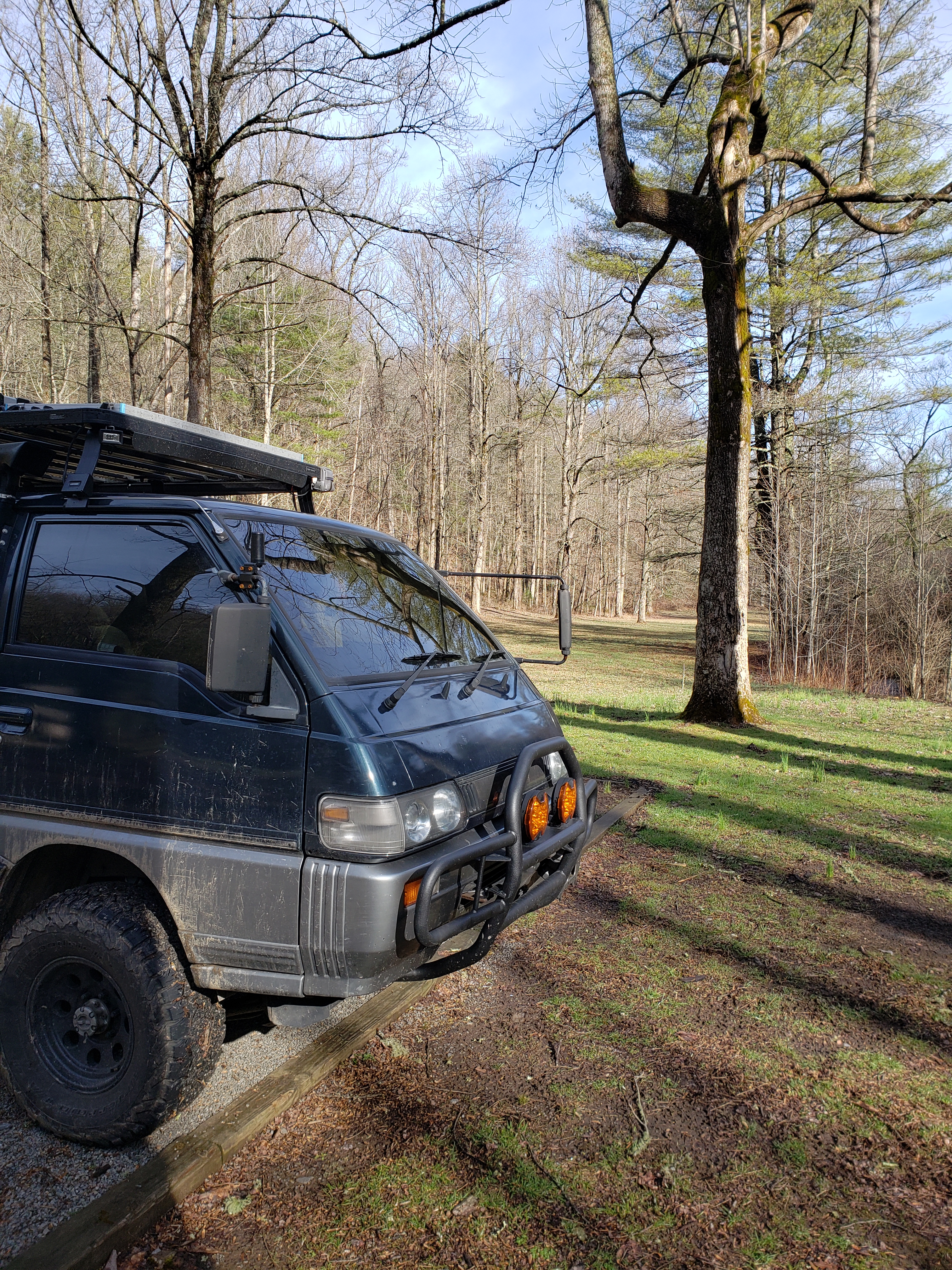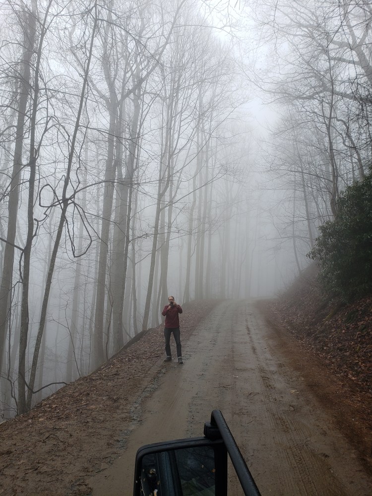 The first site we stayed at was pretty muddy, and we were the only ones there. On the second day, we drove to another one outside of Blue Ridge, GA. The road up wasn’t long, only about 3 miles, but it was steep and foggy at dusk. It was very spooky.