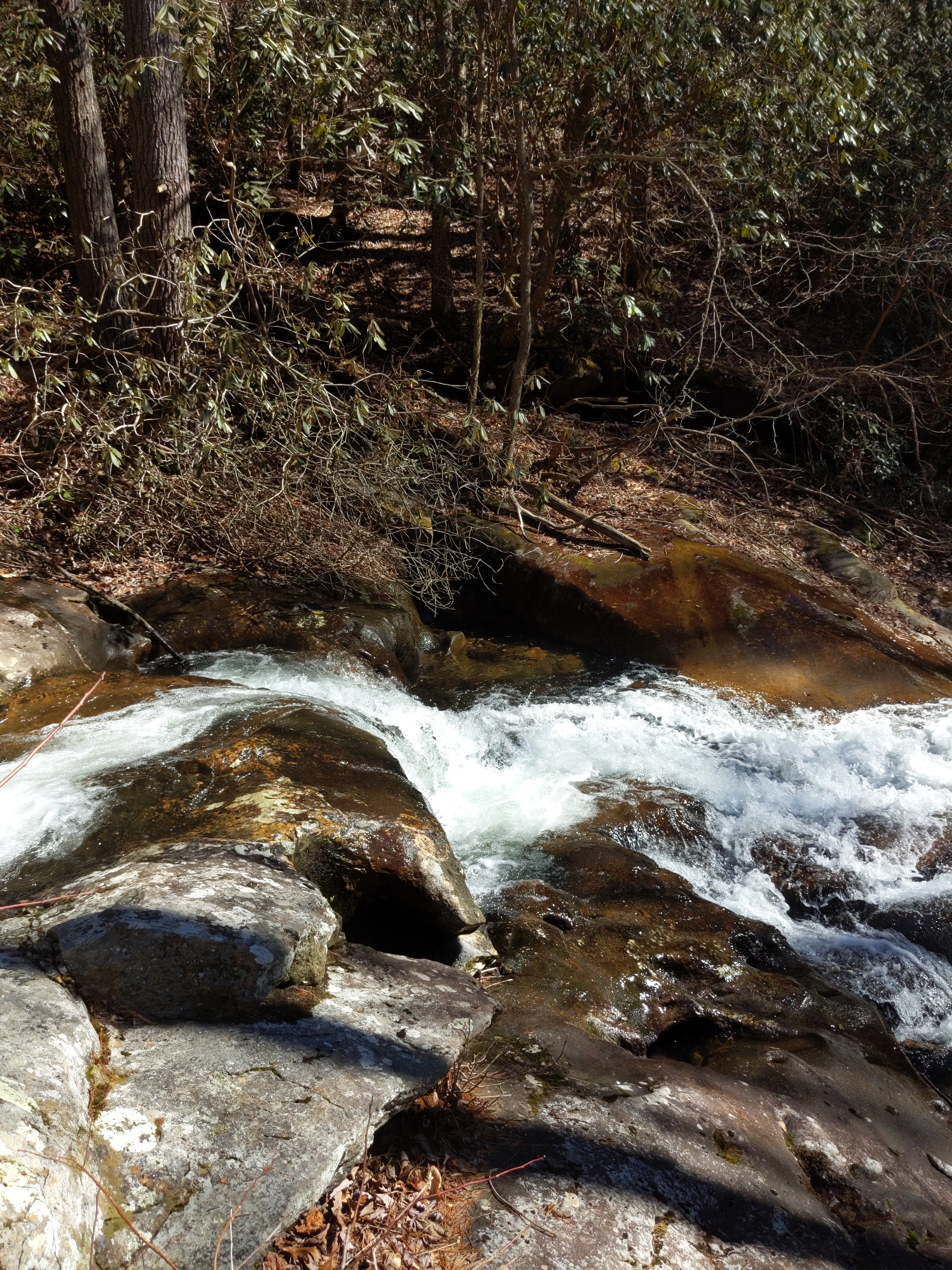 We had discovered on our first day at the campground that it was in a flash flood zone. Not being familiar with the area and due to the endless rain, we decided to find higher ground to camp on our 3rd night. that involved crossing the creek. When we woke up it was raining pretty hard and we realized being on the wrong side of the creek might not be smart so we went back down to the original site. And frankly, the higher site was not so scenic.