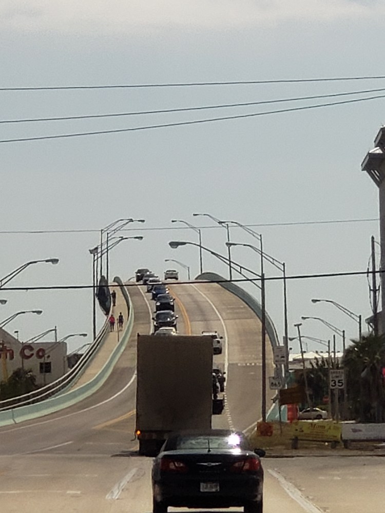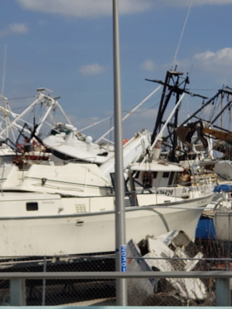 We found a free place to park and access the beach. Something we came to realize over the next few days was a rare thing. I put on my bathing suit and got into the warm Gulf water. I can’t remember the last time I had been to a beach. I enjoyed the feeling of the waves rolling in. Then I started to notice dead fish around me. When I got out of the water I noticed dead fish all over the beach. Not sure how I missed them while walking into the water. We found out later that there was a red tide. Which also explained why our throats started feeling scratchy.