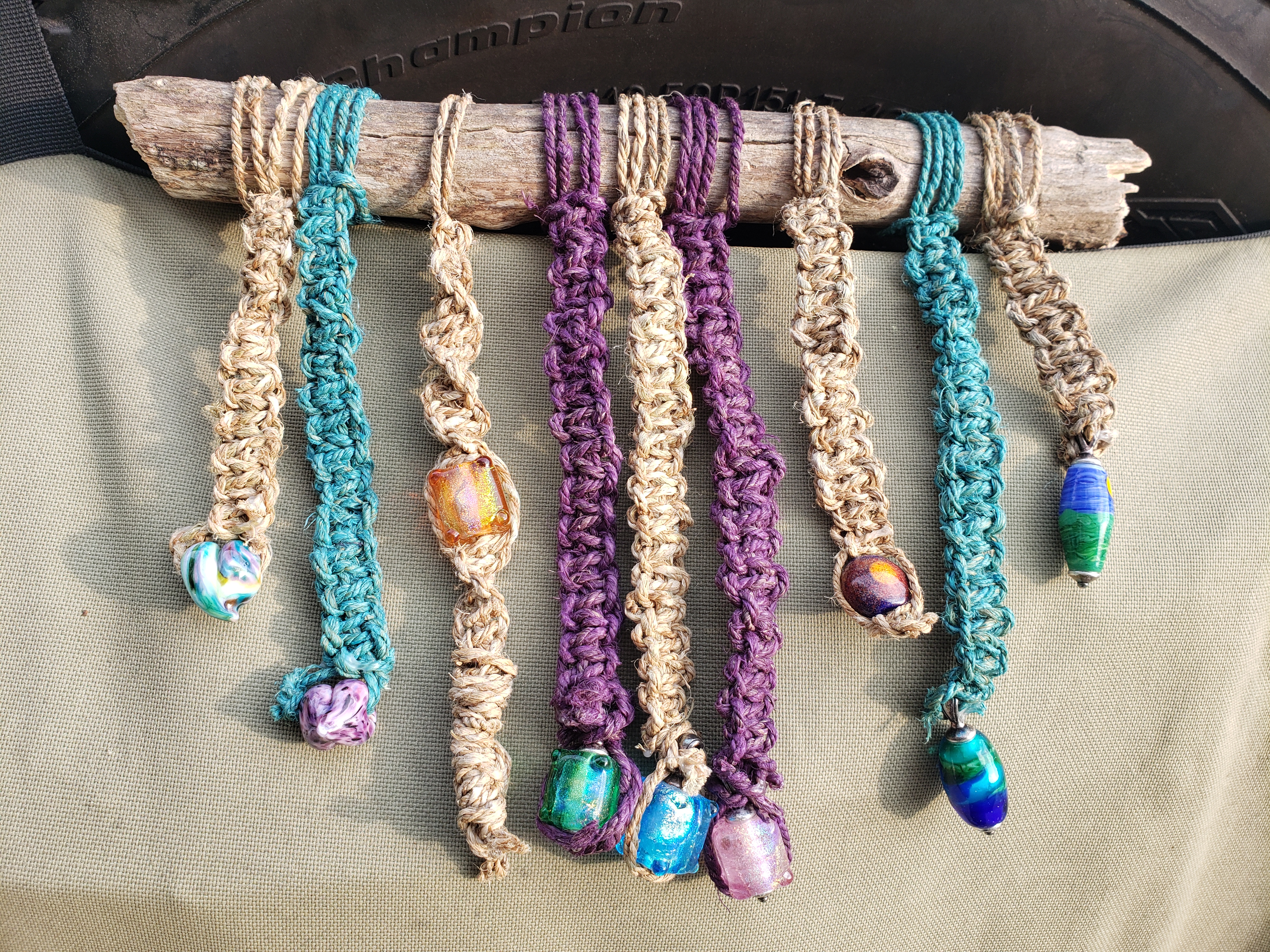 I also finally made a simple macrame wall hanging using a piece of wood I found while camping and the memory beads I had made from cremains of all of my beloved dogs.