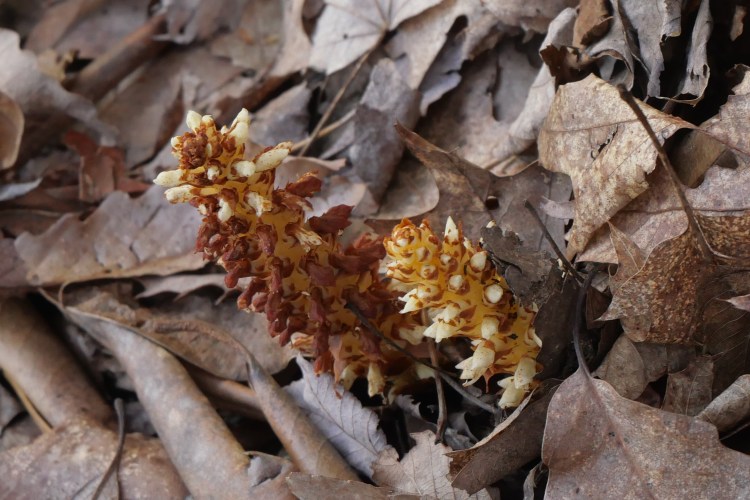 When I first saw these plants, I wasn’t sure if they were flowers or fungi. It turns out that they are fleshy parasitic flowers that live off of oak tree roots. I found them fascinating.