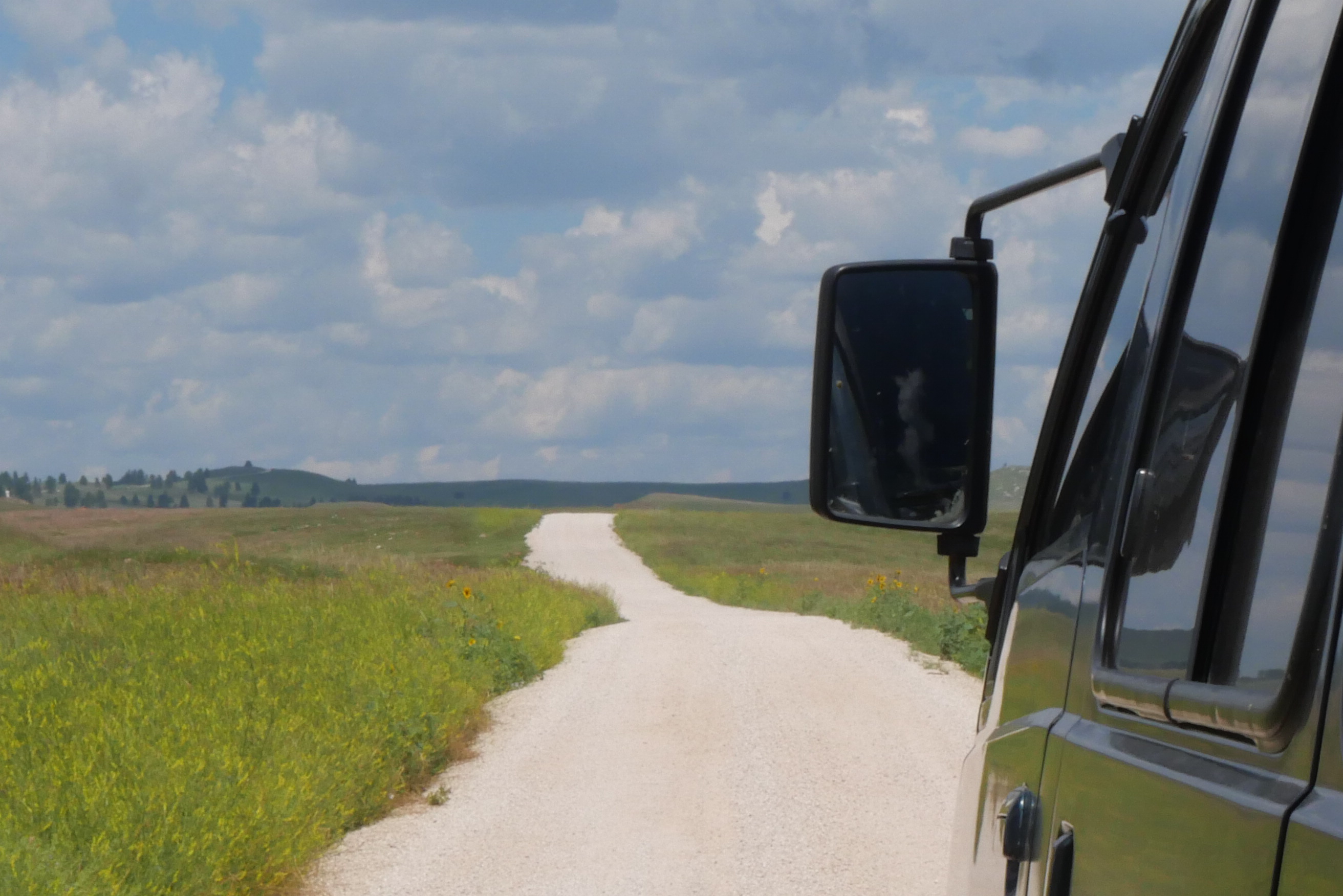 We also took a seemingly seldom-driven dirt road diagonally through the park. We saw very few other vehicles, and none stopped at the lookout we were at. We did see one bison a distance from the road, but that was it for wildlife.