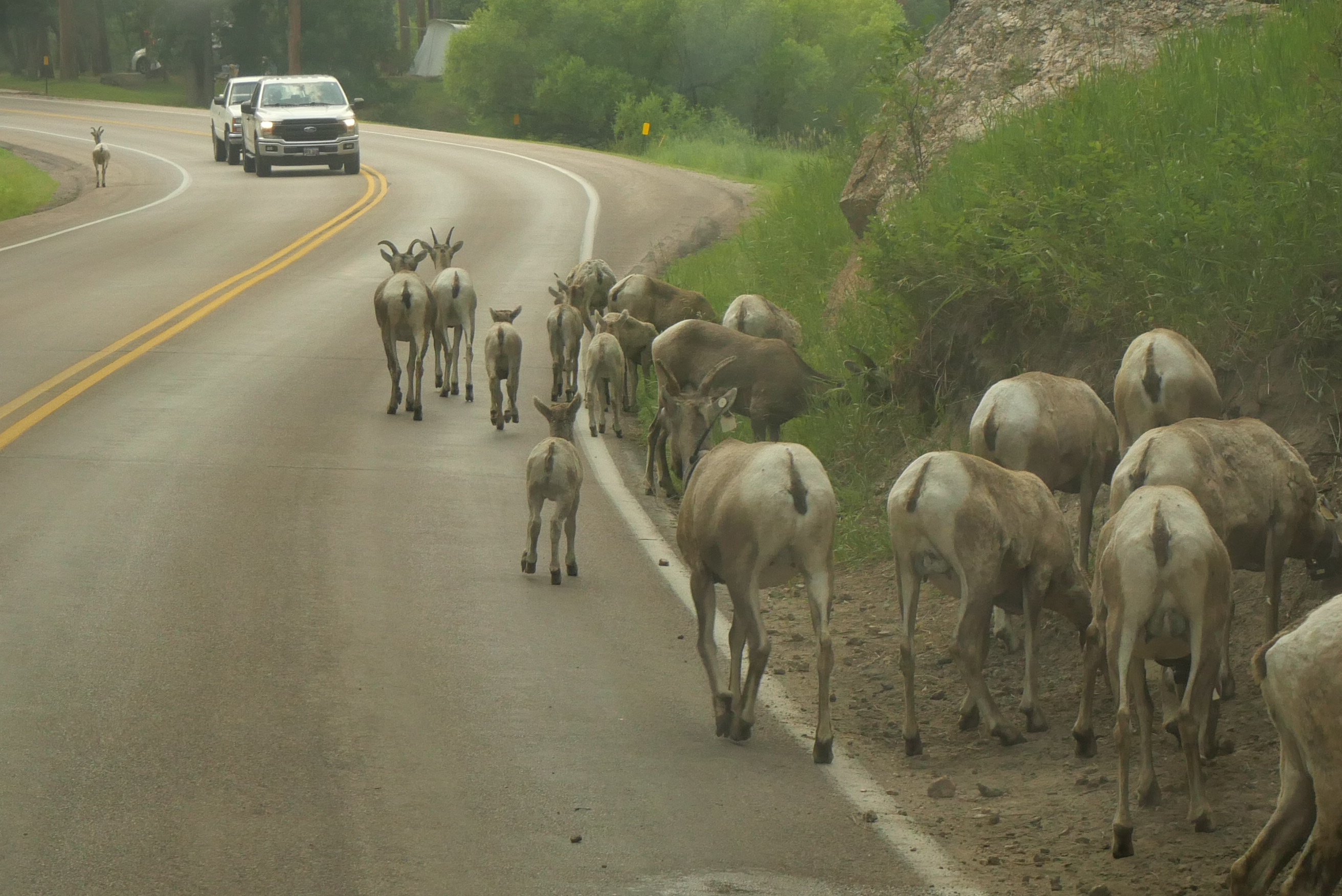 On our way back from Wind Cave NP, we took a different route back and were so glad we did because we came upon a couple cars on the side of the road, always a good sign that wildlife was near. There were four bighorn sheep. I got a few good shots with my telephoto lens.