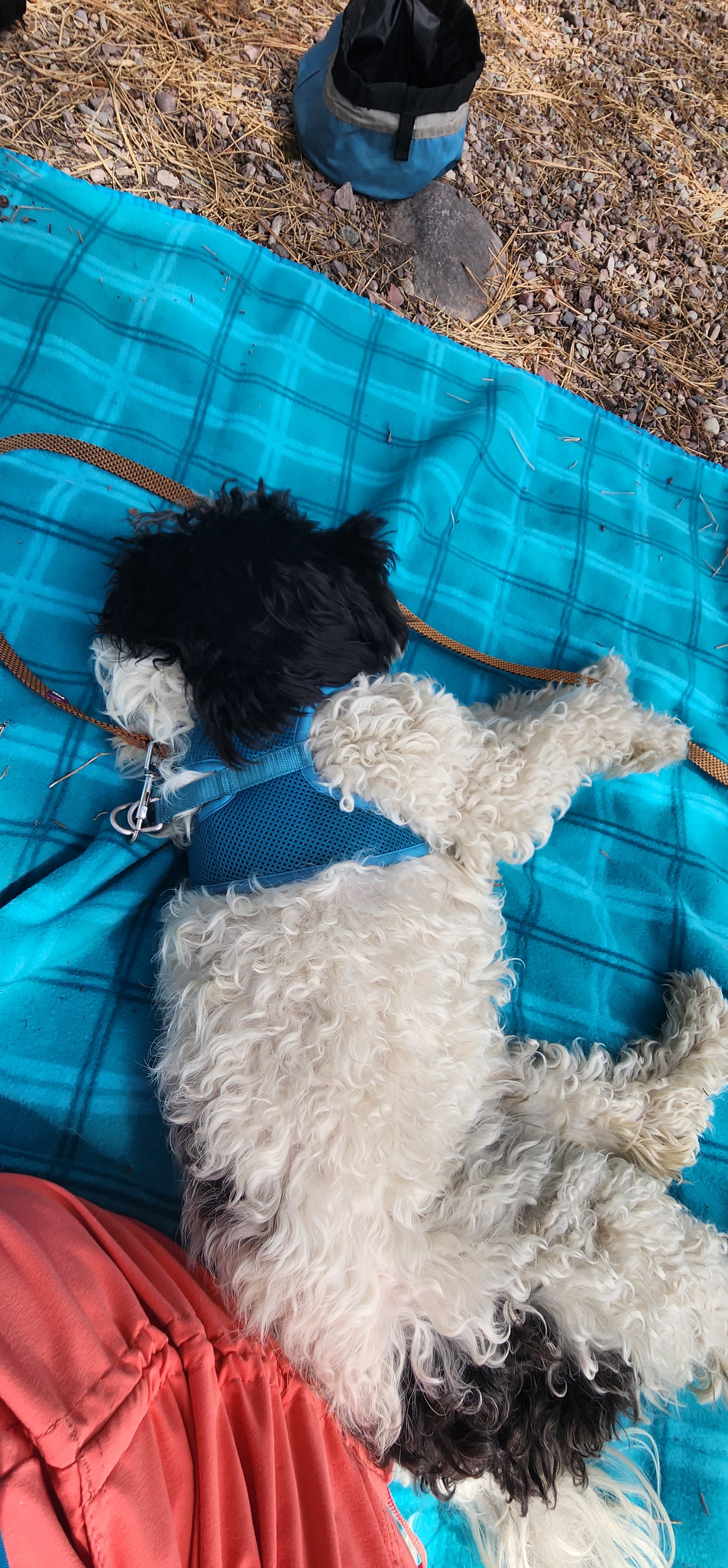 Poppy got to have some fun later that afternoon when we stopped at a dog-friendly brewery. The owner’s doodle dogs were there and Poppy had fun being chased and wrestling with them. She’ll take on dogs of any size.