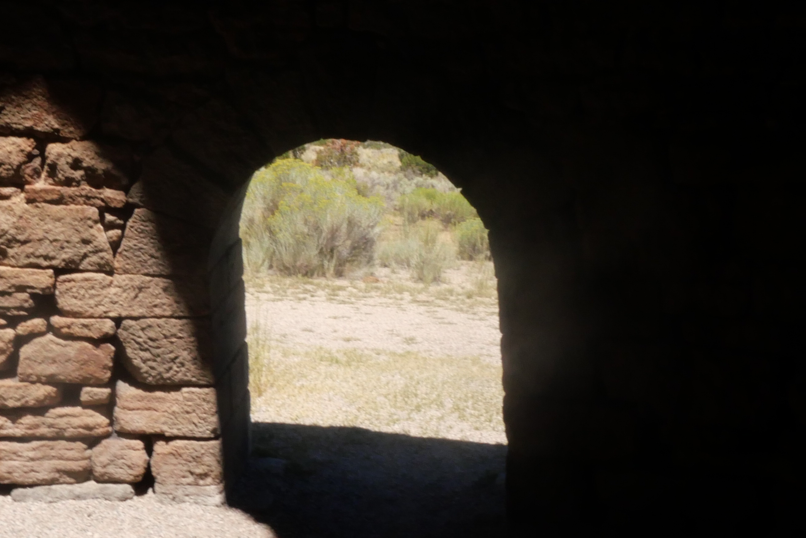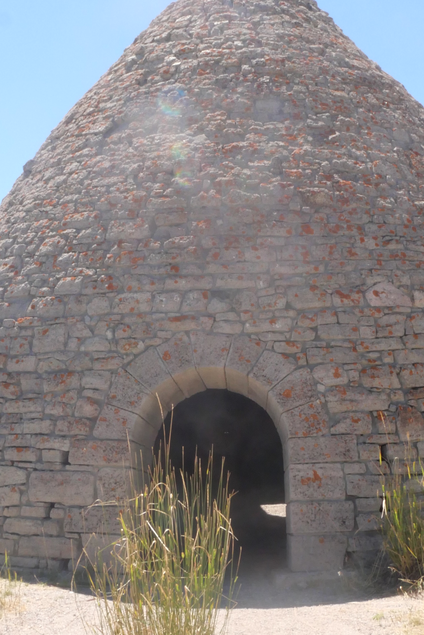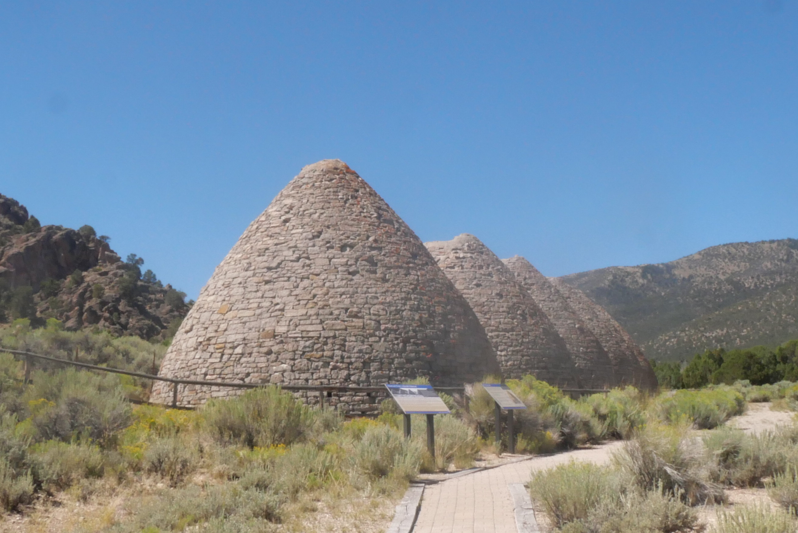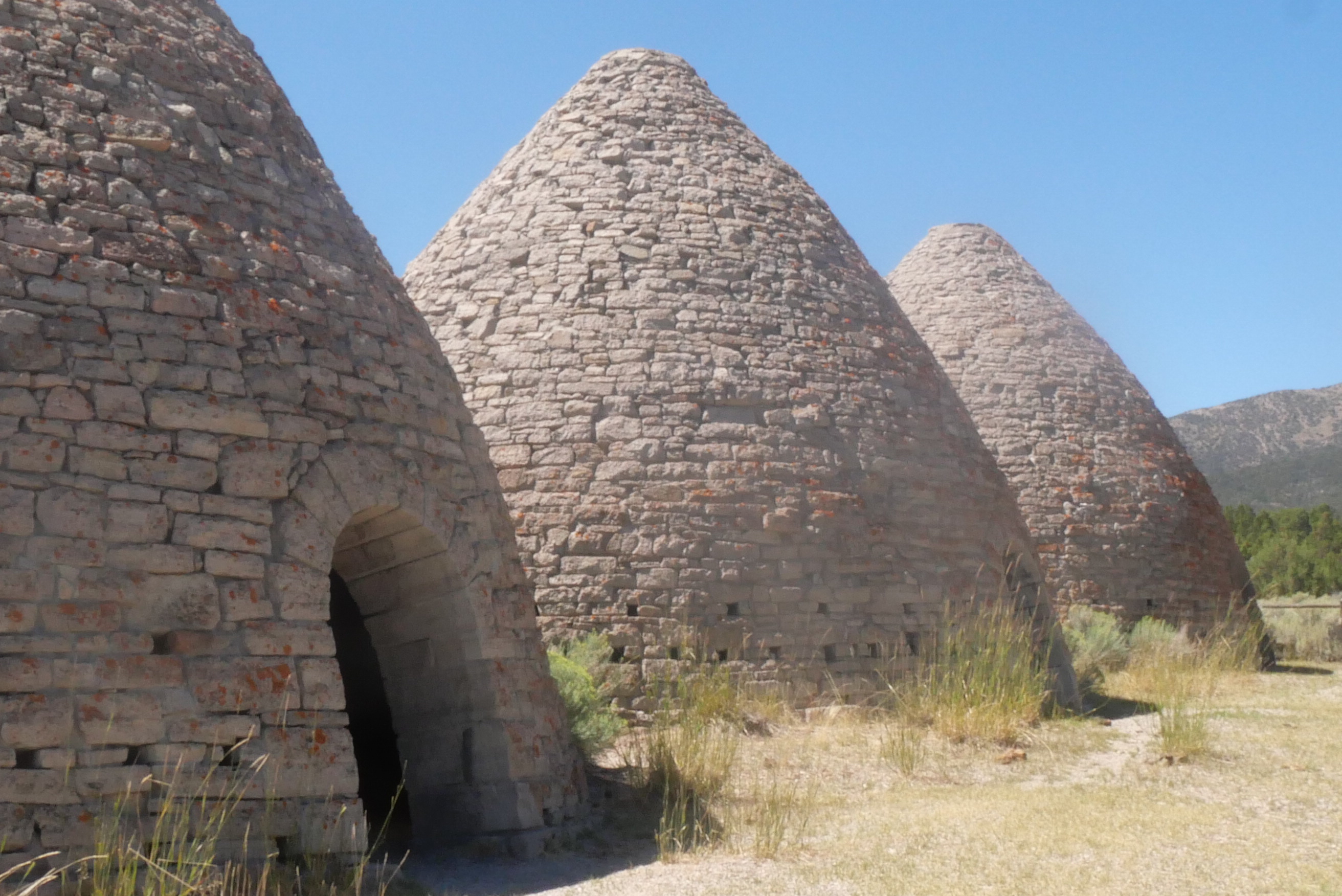 These were used from 1876-1979 to make wood charcoal for nearby silver ore smelters. Each oven took six acres of wood to fill and there are six ovens. The nearby woods were depleted and most have not come back, except in the park where some second-growth timber is growing.