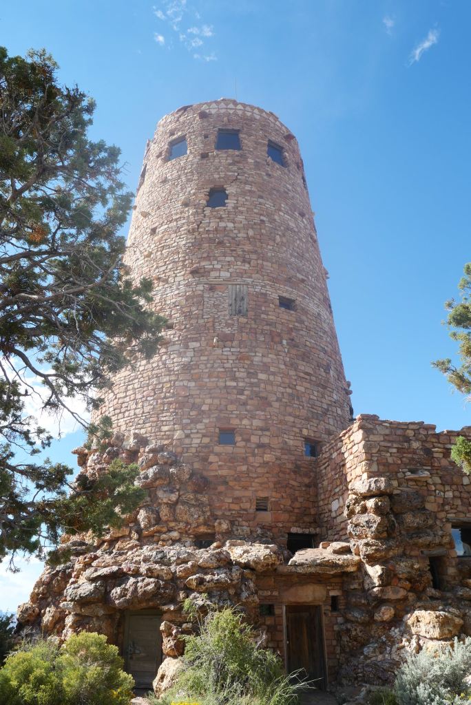 The scenic tour of the South Rim ends at Desert View. Besides the view, there is the 70-ft Desert View Watchtower designed by architect Mary Colter in 1932. The tower was designed to resemble an Ancestral Pueblan watchtower, but much bigger. We didn’t tour the inside.