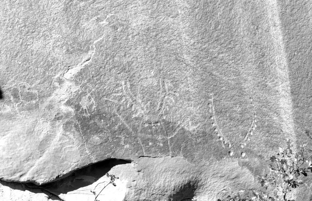 And finally, the petroglyph part of this post. The largest petroglyph panels in the park can be seen from a hiking trail that we couldn’t take with Poppy. However, some smaller ones were located on the way out of the park.