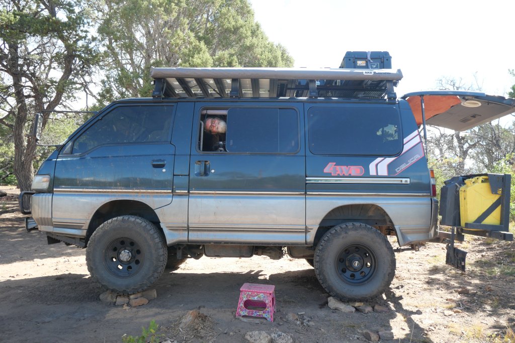 But first, we had to find a place to stay. There was free BLM land very close to the next place we were visiting. Not the flattest sites. Not the cleanest sites, Not the easiest road to navigate. But free.
